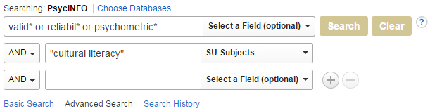 Too few or no articles? Broaden your search to include articles on use in a research study, but includes a discussion of reliability and validation: